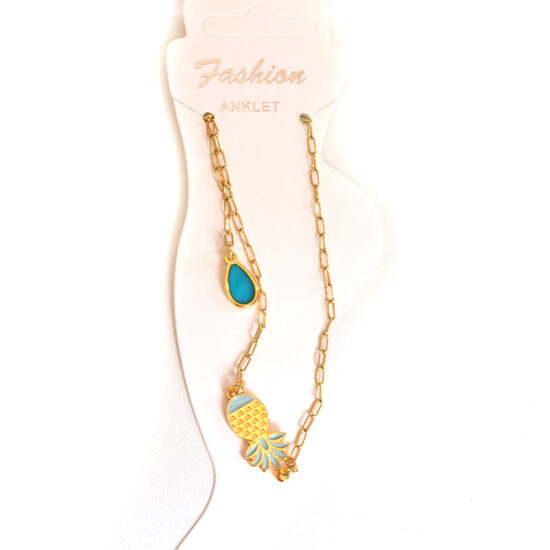 Αλυσίδα ποδιού αστάλινη με τυρκουάζ σύνδεσμο
