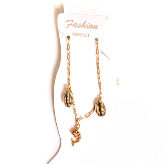 Αλυσίδα ποδιού αστάλινη με κοχύλια και μοτίφ δελφίνι