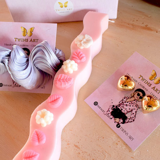 • Γυναικεία Λαμπάδα  από κερί σόγιας λουλούδια με σκουλαρίκια ζιργκόν σταγόνα 💧