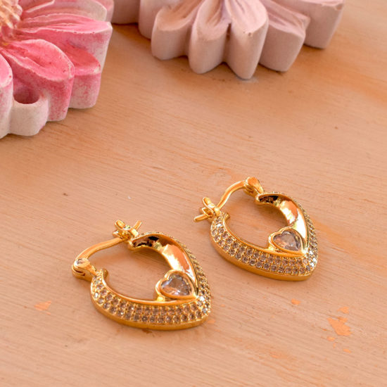 Σκουλαρίκια Κρίκοι καρδιά με στρας