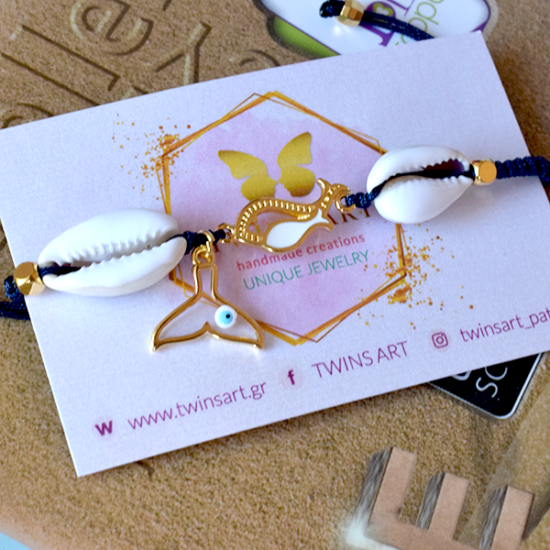 Βραχιόλι με κοχύλια λευκό σμαλτο και μοτίφ φάλαινας 🐳