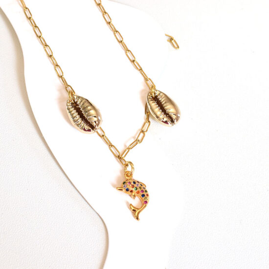 Αλυσίδα ποδιού αστάλινη με κοχύλια και μοτίφ δελφίνι