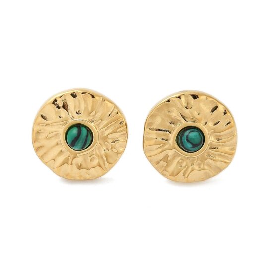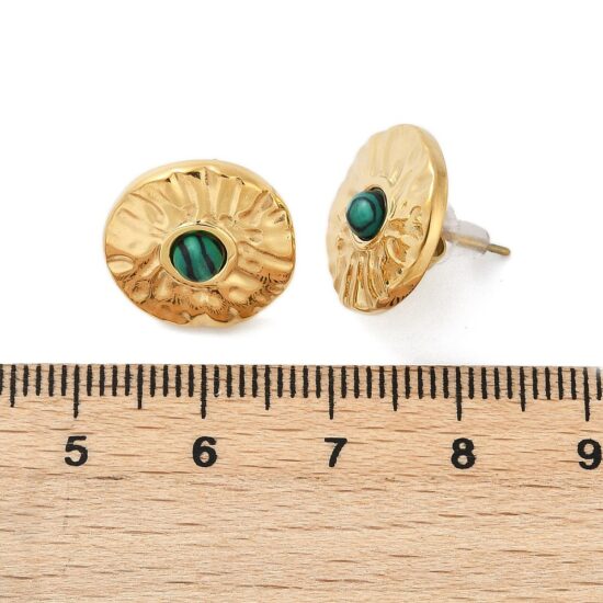 Ατσάλινα σκουλαρίκια – Round Malachite 14K Gold Plated