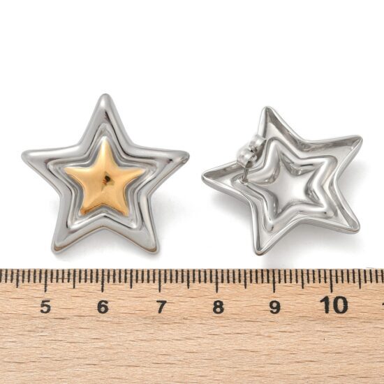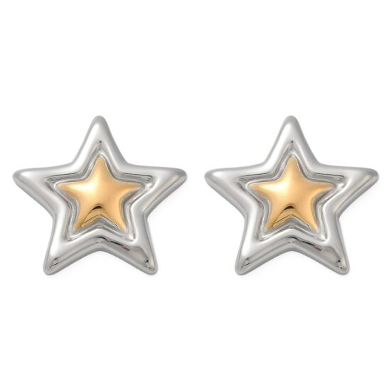 Σκουλαρίκια two tone με σχέδιο αστεριών από ατσάλι 304. Λαμπερά, ονειρικά και κομψά – το σύμπαν της Twins Art σε κόσμημα.