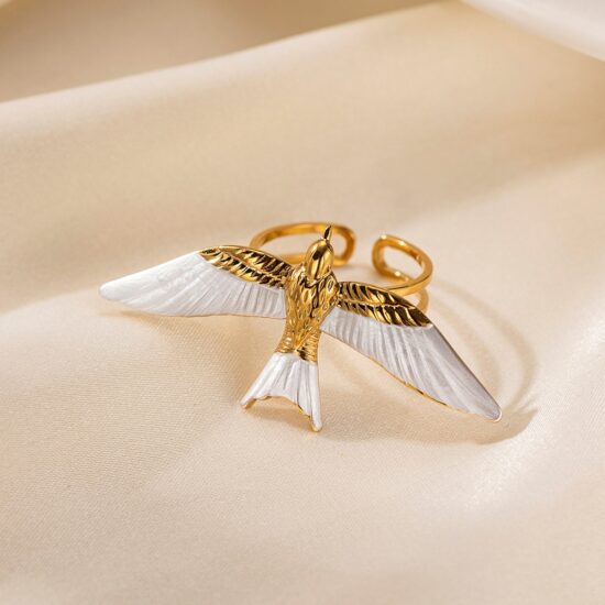 Δαχτυλίδι cuff με λευκό πουλί από ατσάλι 304. Κομψό, ρομαντικό και ευκολοφόρετο – η ανάλαφρη υπογραφή της Twins Art.