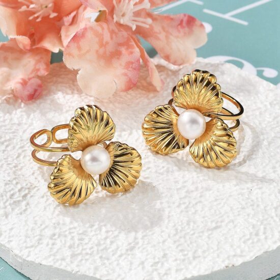 Ένα διαχρονικό κόσμημα που ενώνει τη φρεσκάδα της φύσης με την κομψότητα του χρυσού. Το Flower Open Cuff της Twins Art αγκαλιάζει το δάχτυλο με ένα ανοιχτό σχέδιο που χαρίζει άνεση και στυλ, ενώ το λουλούδι – σύμβολο ομορφιάς και αναγέννησης – προσθέτει ρομαντική λάμψη. Κατασκευασμένο από ατσάλι 304 με επίστρωση χρυσού 18 καρατίων, συνδυάζει ανθεκτικότητα, ποιότητα και εκλεπτυσμένη αισθητική, αποτελώντας ιδανική επιλογή για κάθε περίσταση.