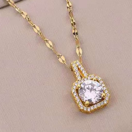 Ατσάλινο κολιέ επίχρυσο με τετράγωνο μενταγιόν σε 2 χρώματα