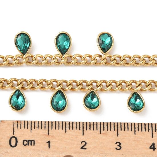 Ατσάλινο κολιέ – Teardrop Rhinestone deep green