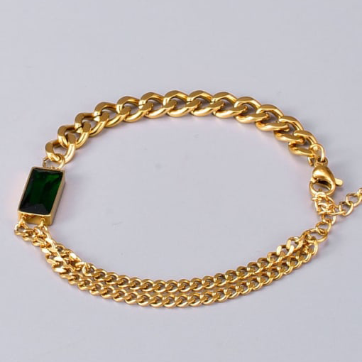 Ατσάλινο βραχιόλι διπλή σειρά επίχρυσο με πράσινο κρύσταλλο