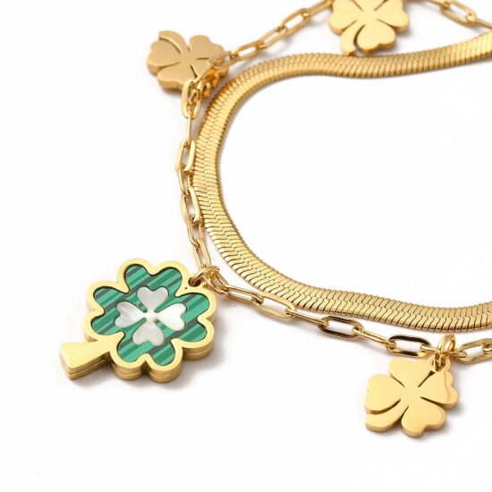 Το Ατσάλινο Βραχιόλι – Shell Clover Charm συνδυάζει τη διαχρονική κομψότητα με μία διακριτική πινελιά τύχης. Το τυχερό τετράφυλλο τριφύλλι από φυσικό όστρακο (shell) αποπνέει αρμονία και θηλυκότητα, ενώ η αλυσίδα από ανοξείδωτο ατσάλι υψηλής ποιότητας προσφέρει αντοχή και λάμψη που διαρκεί.