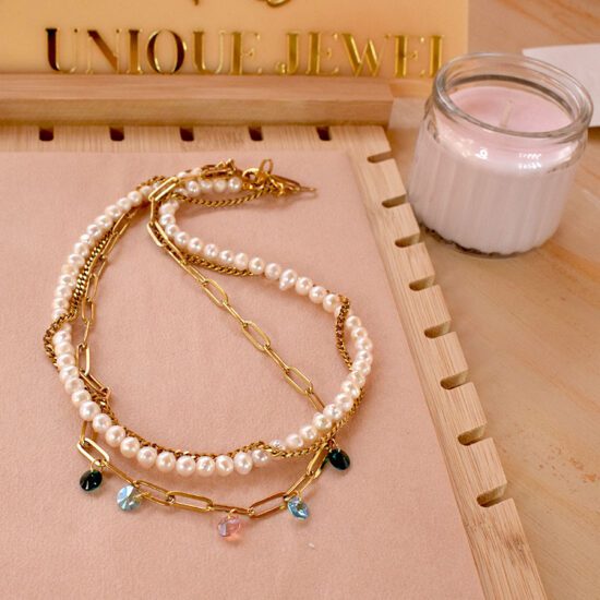 Το απόλυτο κόσμημα layering! Το 3 Layer Pearl Necklace της Twins Art συνδυάζει τρεις διαφορετικές αλυσίδες: κομψά μαργαριτάρια, λαμπερά στοιχεία Swarovski crystals και μοντέρνα αλυσίδα. Ένα μοναδικό μείγμα που αποπνέει κομψότητα και δυναμισμό, ιδανικό για κάθε περίσταση – από πρωινές εμφανίσεις έως βραδινές εξόδους. Η χειροποίητη κατασκευή του προσφέρει ξεχωριστό χαρακτήρα και διαχρονικό στυλ.