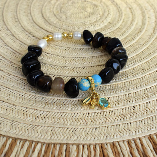 Ελαστικό Βραχιόλι με μάυρες χάντρες αχάτη