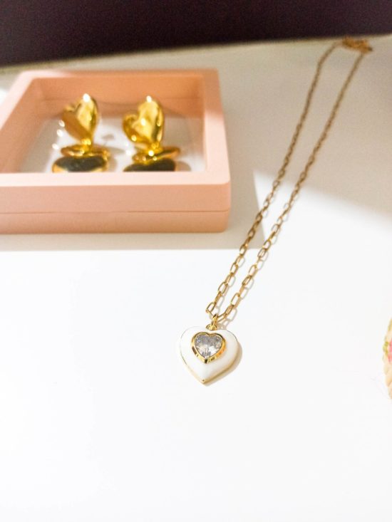 Κολιέ καρδιά λευκό σμάλτο με ατσάλινη αλυσίδα
