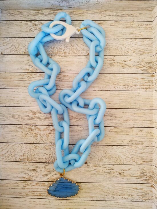 Κολιέ με ακρυλική αλυσίδα γαλάζια με γυάλινο μενταγιόν