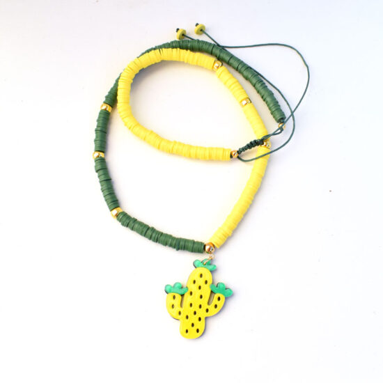 Κολιέ με χάντρες πολυμερικού πηλού και μενταγιόν κάκτος