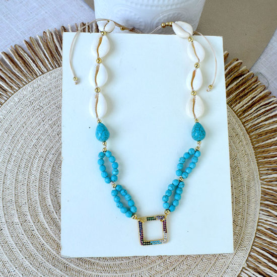 Κολιέ με κοχύλια και τυρκουάζ χάντρες
