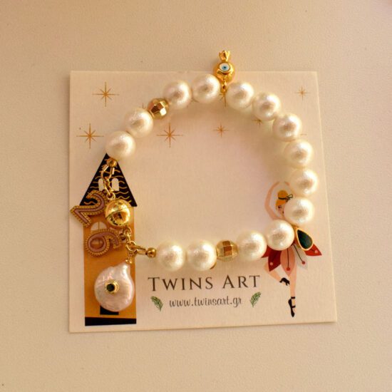 Ένα κομψό γούρι–βραχιόλι για το 2026, διακοσμημένο με λαμπερά shell pearl μαργαριτάρια και εντυπωσιακό μοτίφ ρόδι με ματάκι . Το δυνατό μαγνητικό κούμπωμα προσφέρει εύκολη και ασφαλή εφαρμογή, ενώ τα χρυσά μεταλλικά στοιχεία ολοκληρώνουν τη premium αισθητική του.
