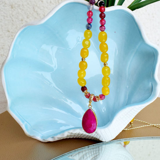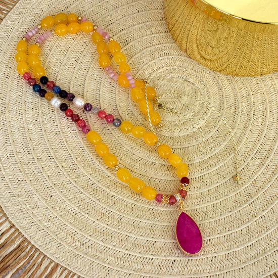 Μακρύ κολιέ με χάντρες νεφρίτη φούξια πορτοκαλί