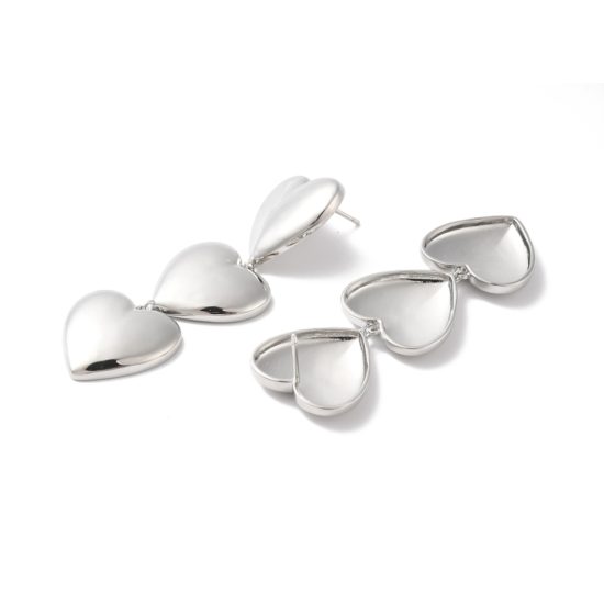 Long-Lasting Plated Brass Triple Heart Long Dangle Stud Earrings for Women, Cadmium Free & Lead Free, Real Platinum Plated