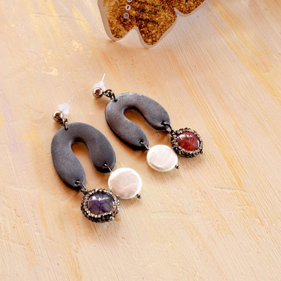 Σκουλαρίκια petal rhinestone πολυμερικός πηλός