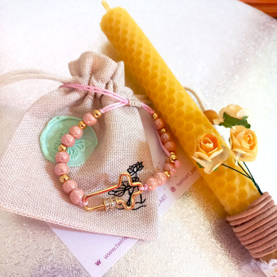 Βραχιόλι Σταυρός με κεραμικές χάντρες – Δώρο natural beeswax candle 20cm